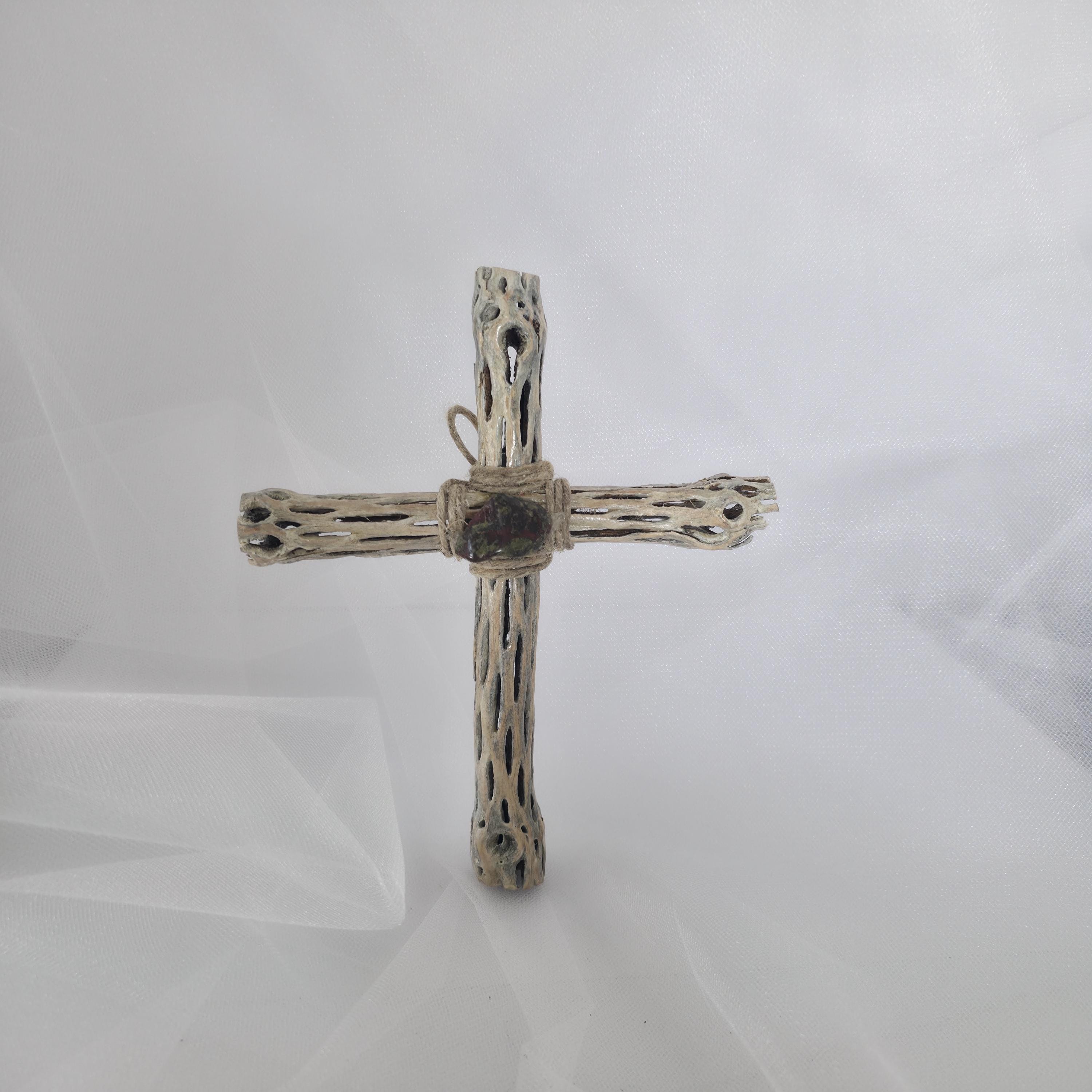 Embrace the rugged beauty of the desert with this one-of-a-kind handmade Cholla Cactus Wood Cross. Each piece is carefully crafted using authentic dried cholla skeleton, known for its iconic organic "lattice" or "honeycomb" patterns. This cross hangs on a wall, natural wood base, creating a striking silhouette that balances rustic charm with spiritual significance. Because cholla is a natural material shaped by the elements, no two crosses are exactly alike. You are receiving a unique work of art that brings the spirit of the American Southwest into your home. Product Features: • Materials: Authentic Cholla Cactus Wood, Natural Driftwood/Root Base. • Style: Rustic, Southwestern, Boho, Farmhouse. • Dimensions:6x7 • Usage: Perfect for a mantle, bedside table, or as a meaningful housewarming or baptism gift. • Handmade Quality: Sanded and finished to highlight the natural wood grain and textures. Note: As this is made from natural desert wood, slight variations in color, texture, and shape are to be expected and celebrated!