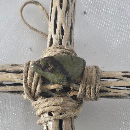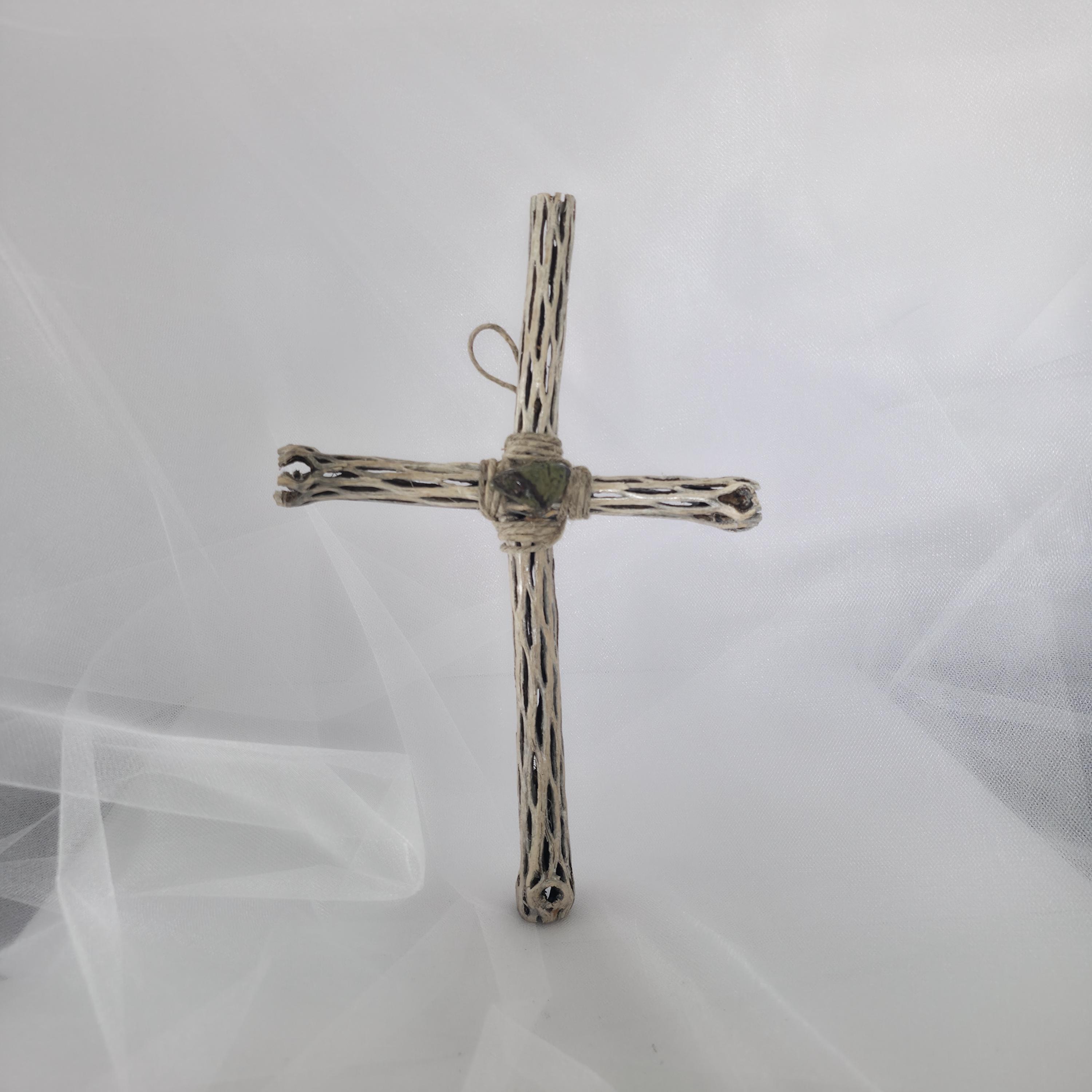 Embrace the rugged beauty of the desert with this one-of-a-kind handmade Cholla Cactus Wood Cross. Each piece is carefully crafted using authentic dried cholla skeleton, known for its iconic organic "lattice" or "honeycomb" patterns. This cross hangs on a wall, natural wood base, creating a striking silhouette that balances rustic charm with spiritual significance. Because cholla is a natural material shaped by the elements, no two crosses are exactly alike. You are receiving a unique work of art that brings the spirit of the American Southwest into your home. Product Features: • Materials: Authentic Cholla Cactus Wood, Natural Driftwood/Root Base. • Style: Rustic, Southwestern, Boho, Farmhouse. • Dimensions:7x11 • Usage: Perfect for a mantle, bedside table, or as a meaningful housewarming or baptism gift. • Handmade Quality: Sanded and finished to highlight the natural wood grain and textures. Note: As this is made from natural desert wood, slight variations in color, texture, and shape are to be expected and celebrated!