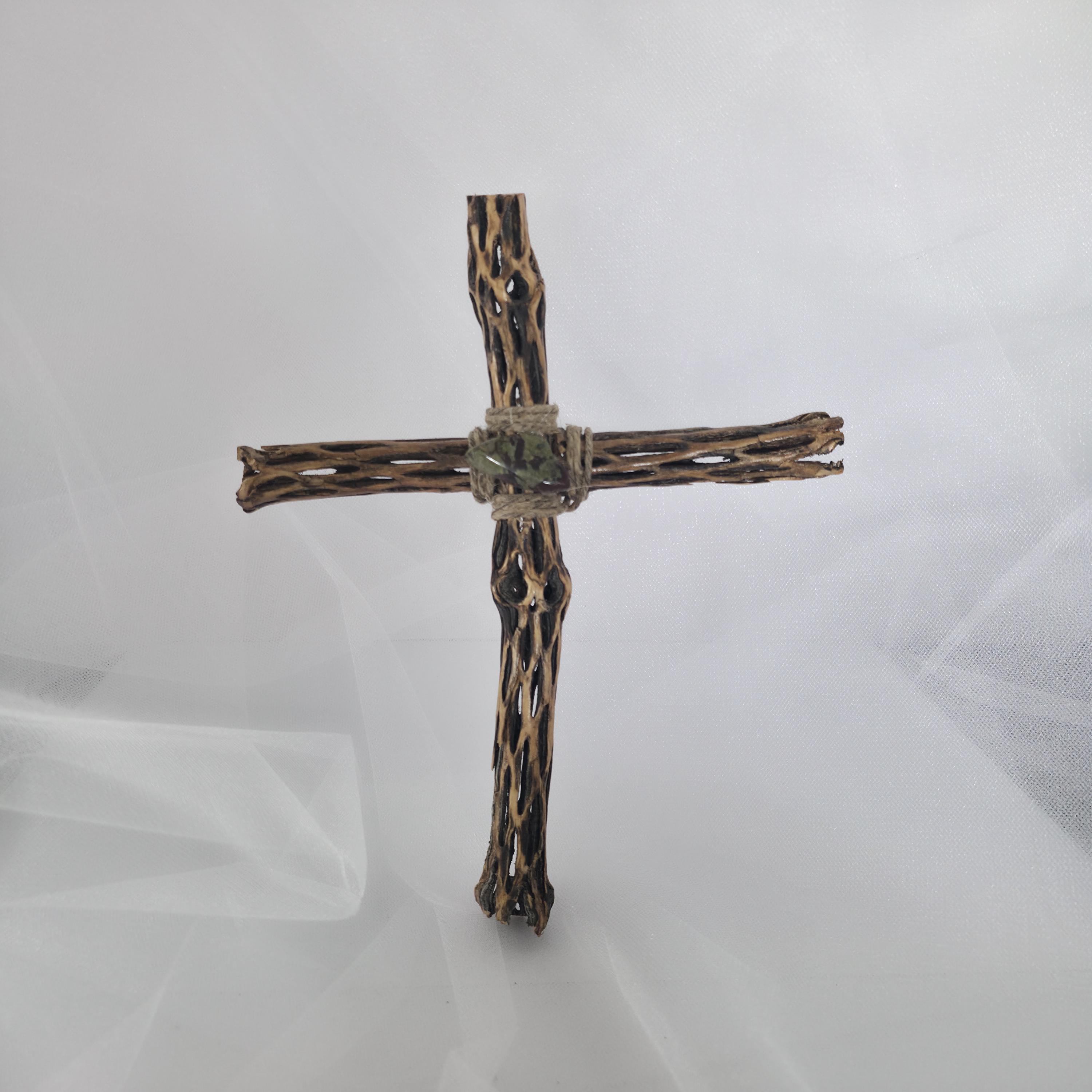 Embrace the rugged beauty of the desert with this one-of-a-kind handmade Cholla Cactus Wood Cross. Each piece is carefully crafted using authentic dried cholla skeleton, known for its iconic organic "lattice" or "honeycomb" patterns. This cross hangs on a wall, natural wood base, creating a striking silhouette that balances rustic charm with spiritual significance. Because cholla is a natural material shaped by the elements, no two crosses are exactly alike. You are receiving a unique work of art that brings the spirit of the American Southwest into your home. Product Features: • Materials: Authentic Cholla Cactus Wood, Natural Driftwood/Root Base. • Style: Rustic, Southwestern, Boho, Farmhouse. • Dimensions:8x9• Usage: Perfect for a mantle, bedside table, or as a meaningful housewarming or baptism gift. • Handmade Quality: Sanded and finished to highlight the natural wood grain and textures. Note: As this is made from natural desert wood, slight variations in color, texture, and shape are to be expected and celebrated!