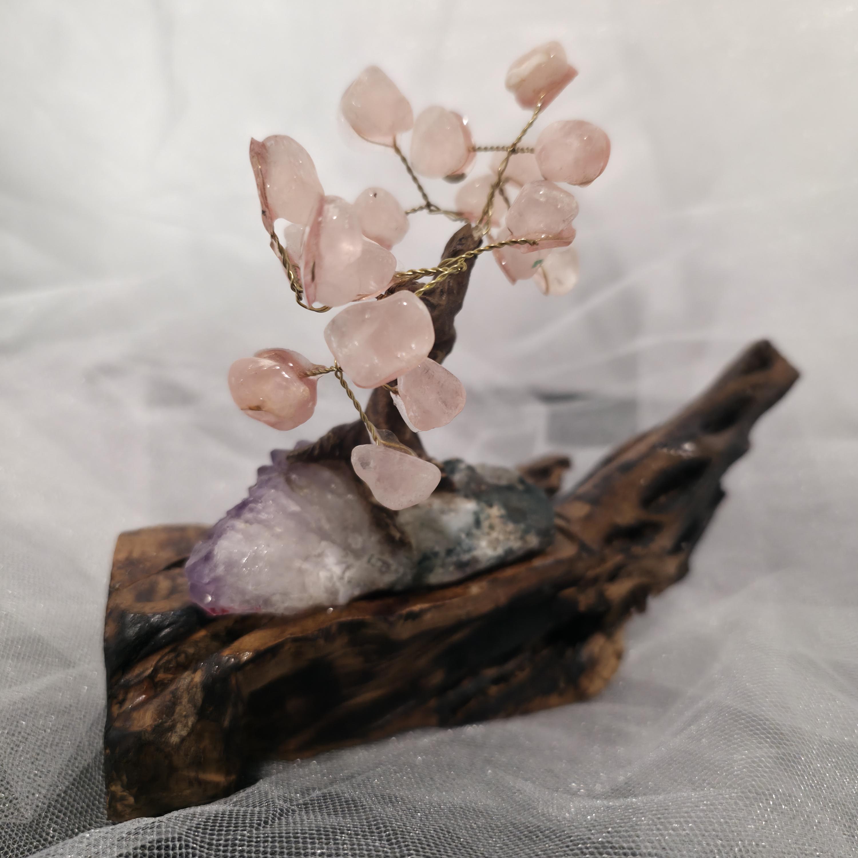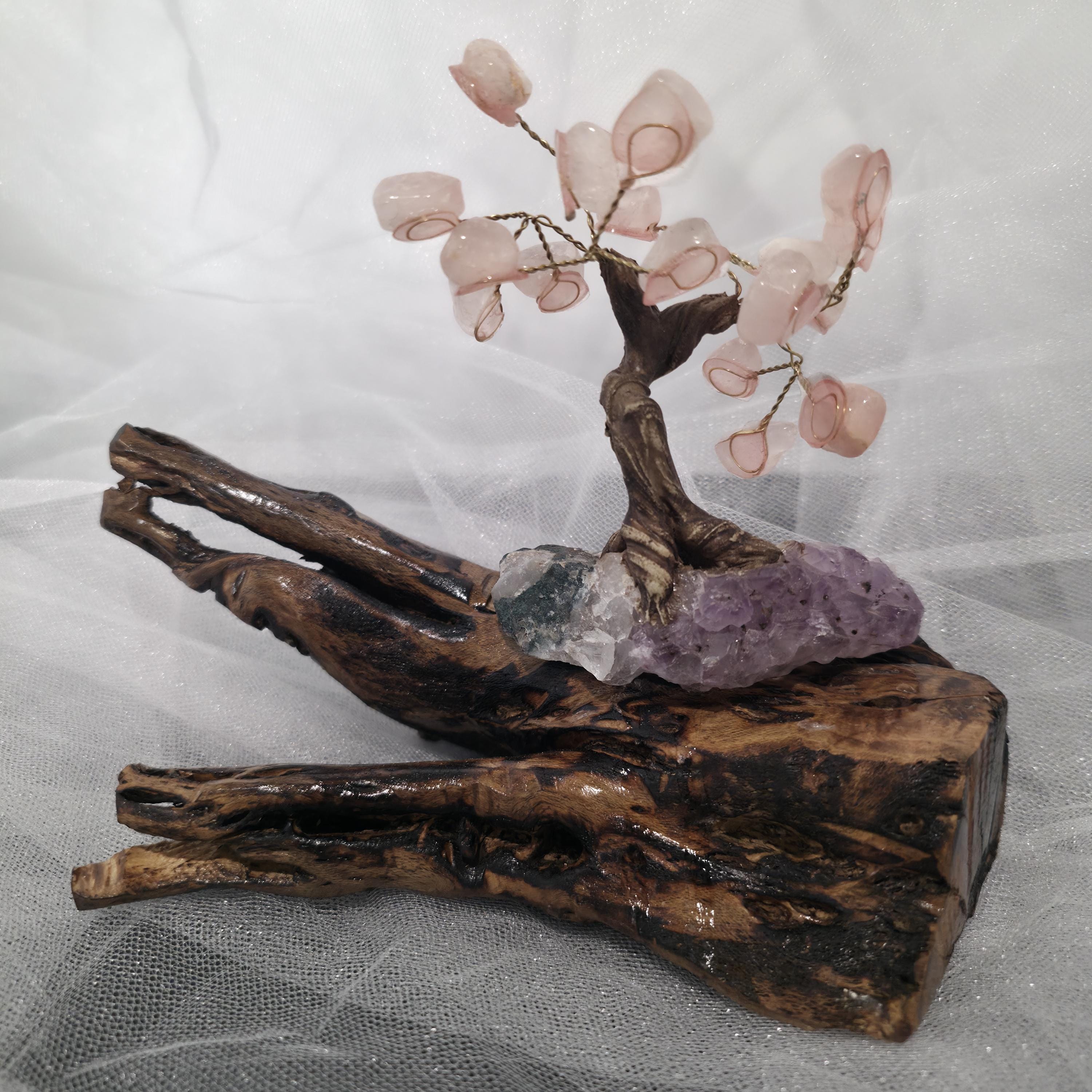 Embrace the rugged beauty of the desert with this one-of-a-kind handmade Bonsai Tree on a crystal and Cholla Cactus base. Each piece is carefully crafted using authentic dried cholla skeleton, known for its iconic organic "lattice" or "honeycomb" patterns. A striking silhouette that balances rustic charm with spiritual significance. Because cholla is a natural material shaped by the elements, no two pieces are exactly alike. You are receiving a unique work of art that brings the spirit of the American Southwest into your home. Product Features: • Materials: Crystals and Cholla Cactus natural Root Base. • Style: Rustic, Southwestern, Boho, Farmhouse. • Dimensions:7x4x6 • Usage: Perfect for a mantle, bedside table, or as a meaningful housewarming or spiritual gift. It represents harmony, balance, and patience. • Handmade Quality: Sanded and finished to highlight the natural wood grain and textures. Note: As this is made from natural desert wood, slight variations in color, texture, and shape are to be expected and celebrated!