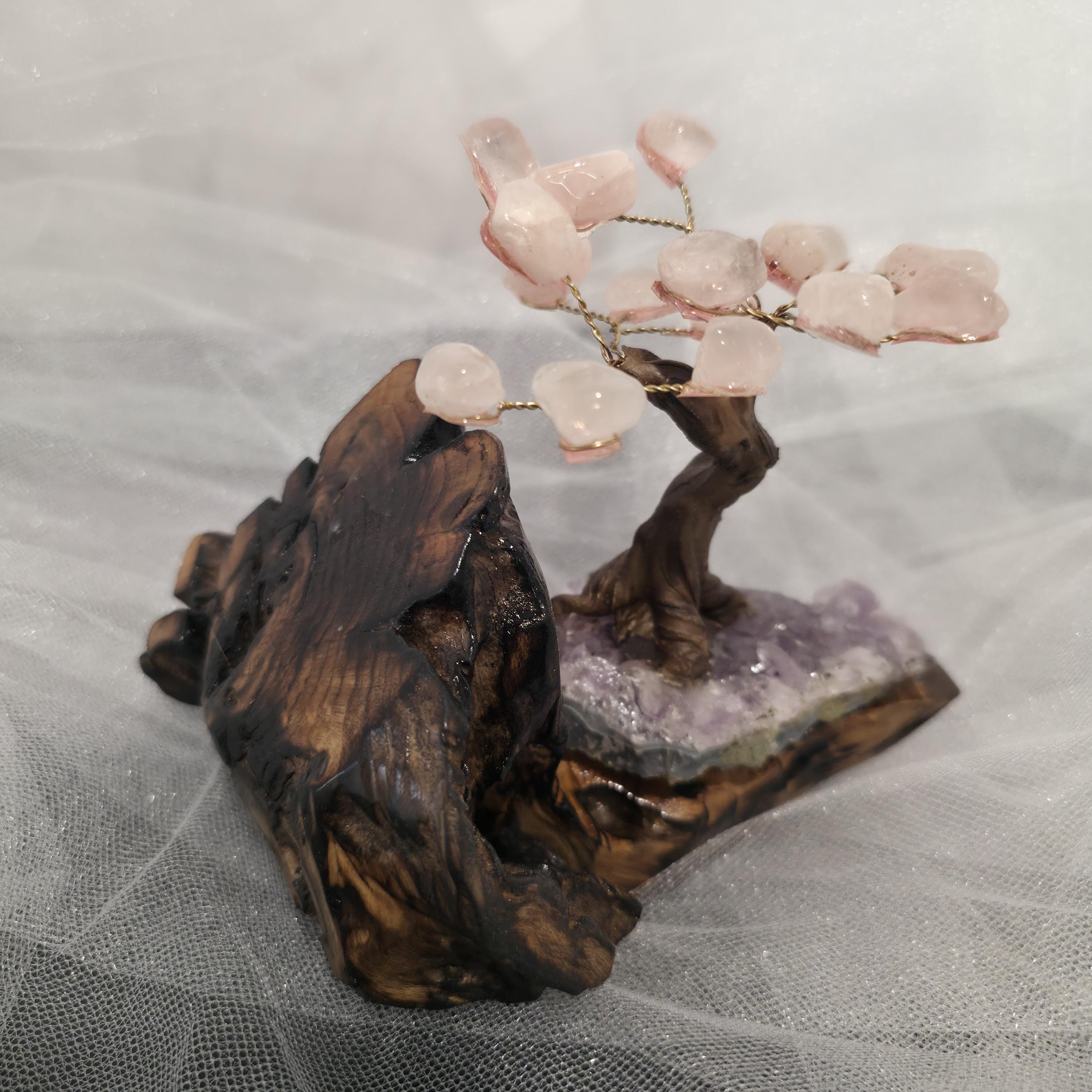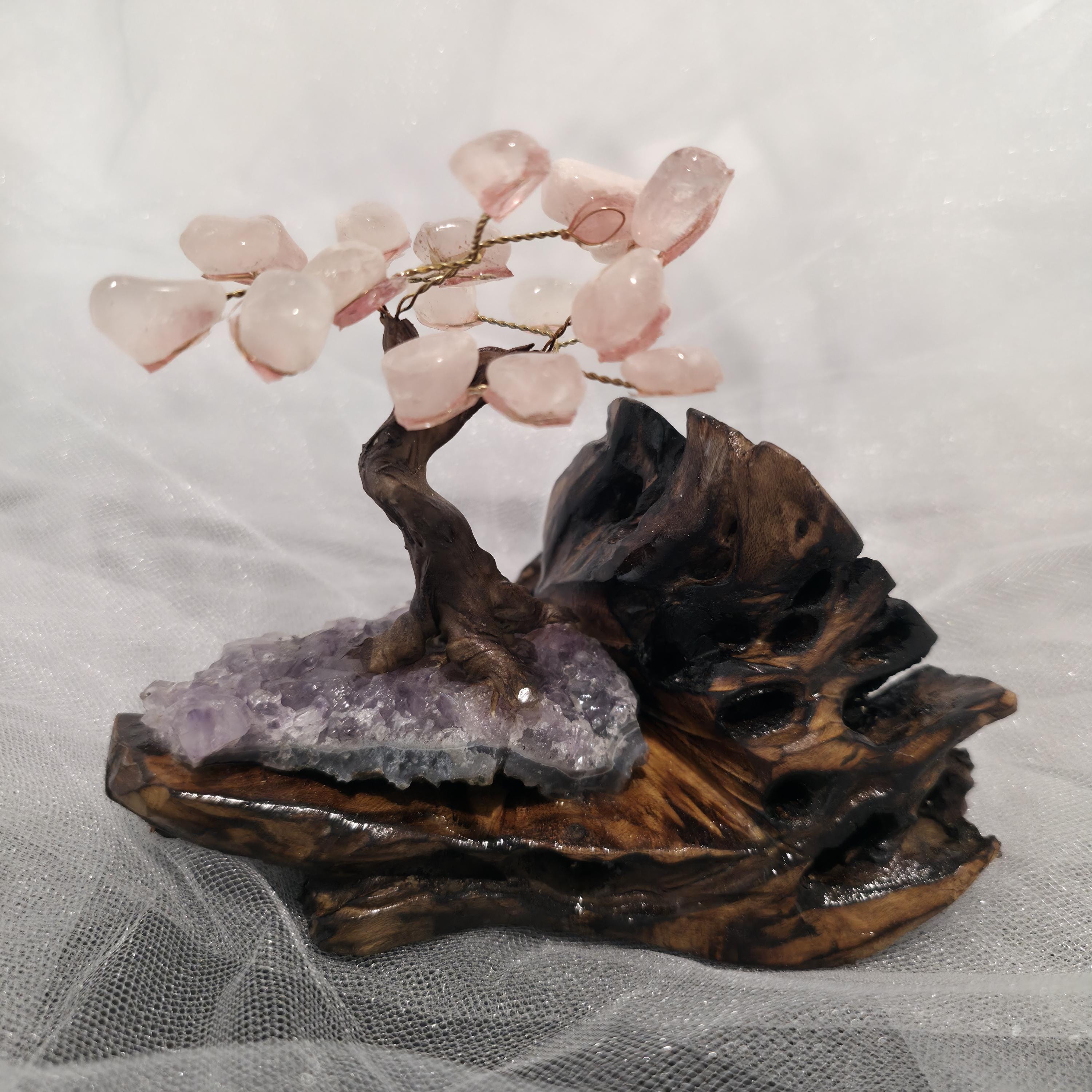 Embrace the rugged beauty of the desert with this one-of-a-kind handmade Bonsai Tree on a crystal and Cholla Cactus base. Each piece is carefully crafted using authentic dried cholla skeleton, known for its iconic organic "lattice" or "honeycomb" patterns. A striking silhouette that balances rustic charm with spiritual significance. Because cholla is a natural material shaped by the elements, no two pieces are exactly alike. You are receiving a unique work of art that brings the spirit of the American Southwest into your home. Product Features: • Materials: Crystals and Cholla Cactus natural Root Base. • Style: Rustic, Southwestern, Boho, Farmhouse. • Dimensions: 5x3x5 • Usage: Perfect for a mantle, bedside table, or as a meaningful housewarming or spiritual gift. It represents harmony, balance, and patience. • Handmade Quality: Sanded and finished to highlight the natural wood grain and textures. Note: As this is made from natural desert wood, slight variations in color, texture, and shape are to be expected and celebrated!